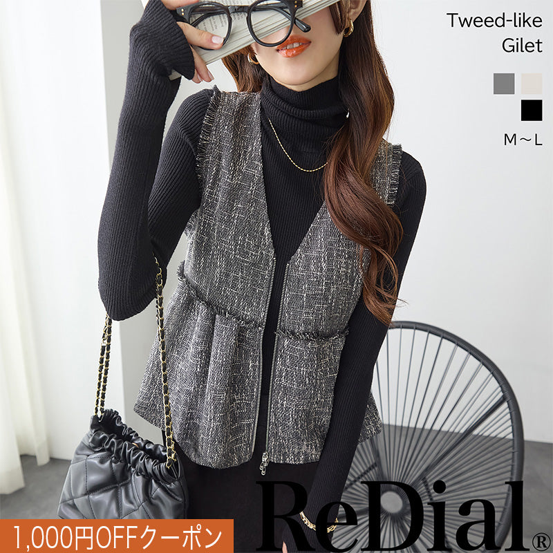 【コート/ジャケット】『格上げツイード調ベスト』ジッパー使いツイード調ベスト