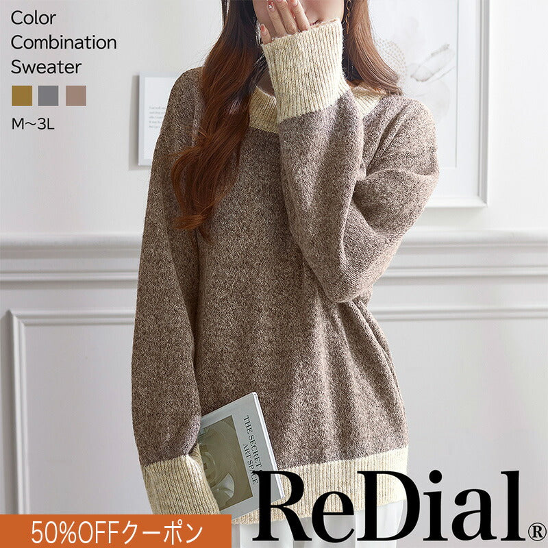 ミックスカラーのふんわりニットに、印象的な配色で可愛いさアップ。
