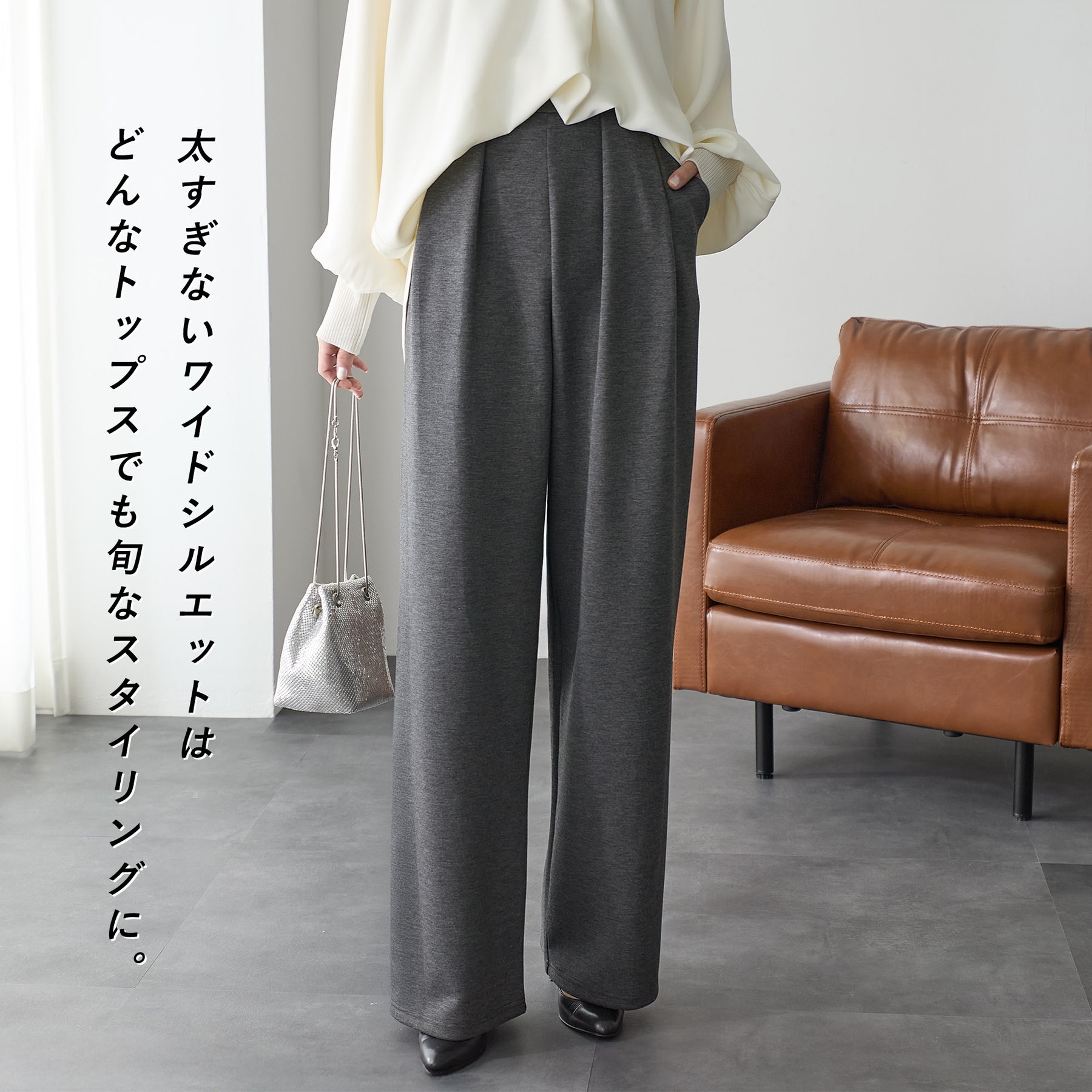 【クーポンで2,999円!】【ボトムス】『”美フォルム”ワイド』リッチエアジャージー2タックパンツ