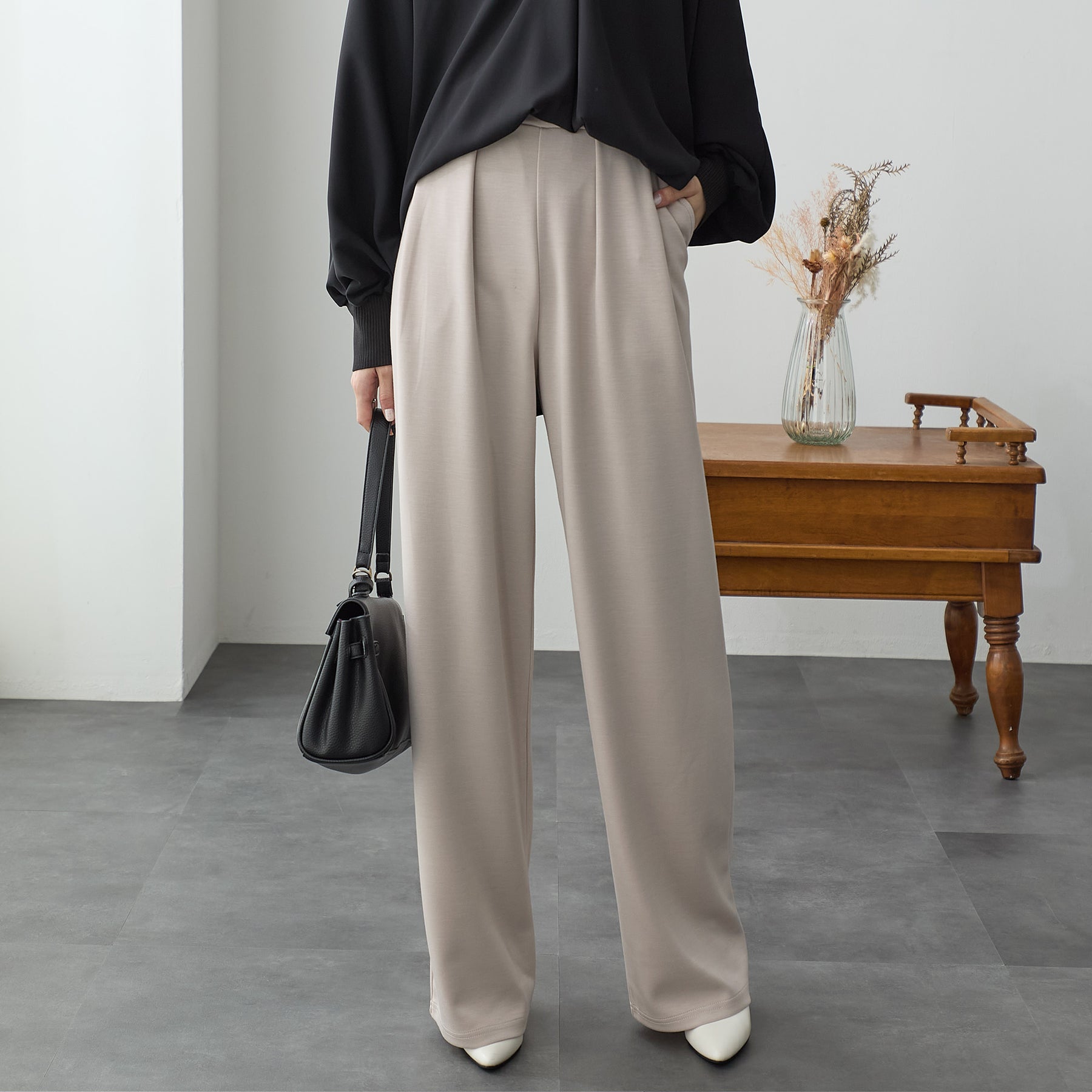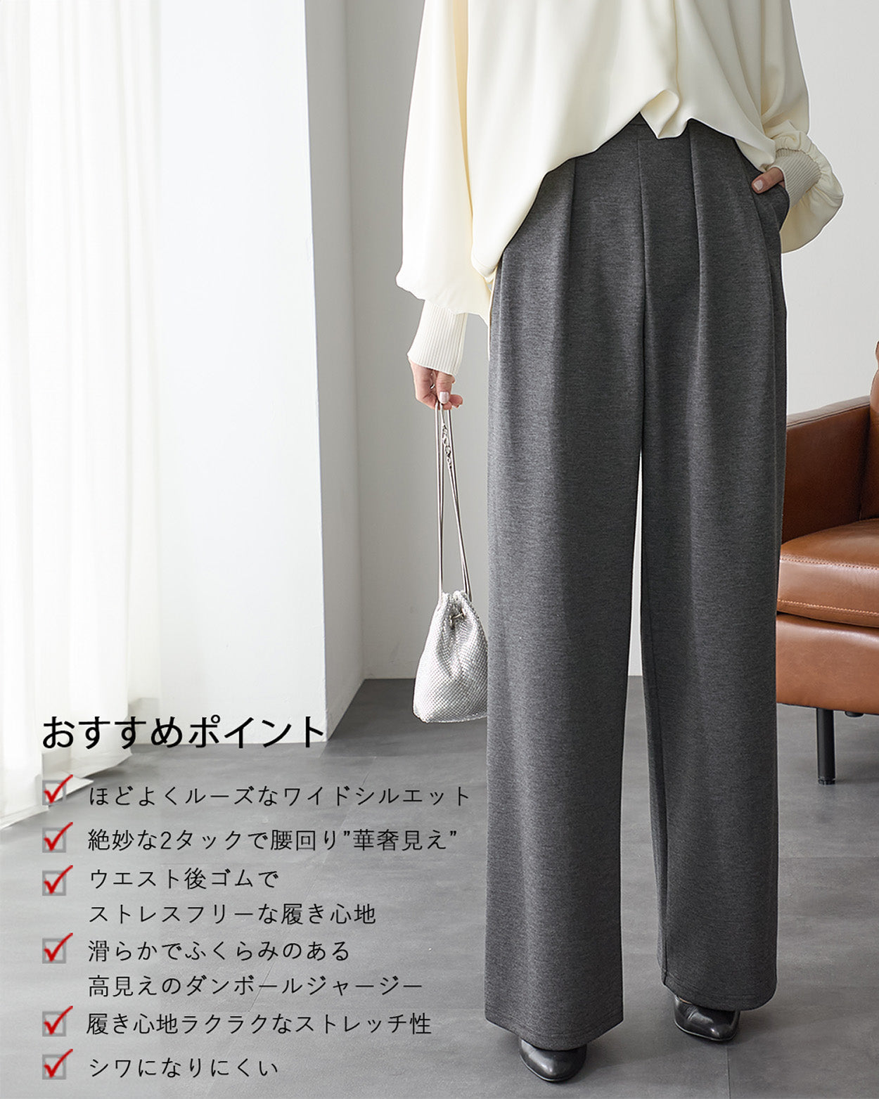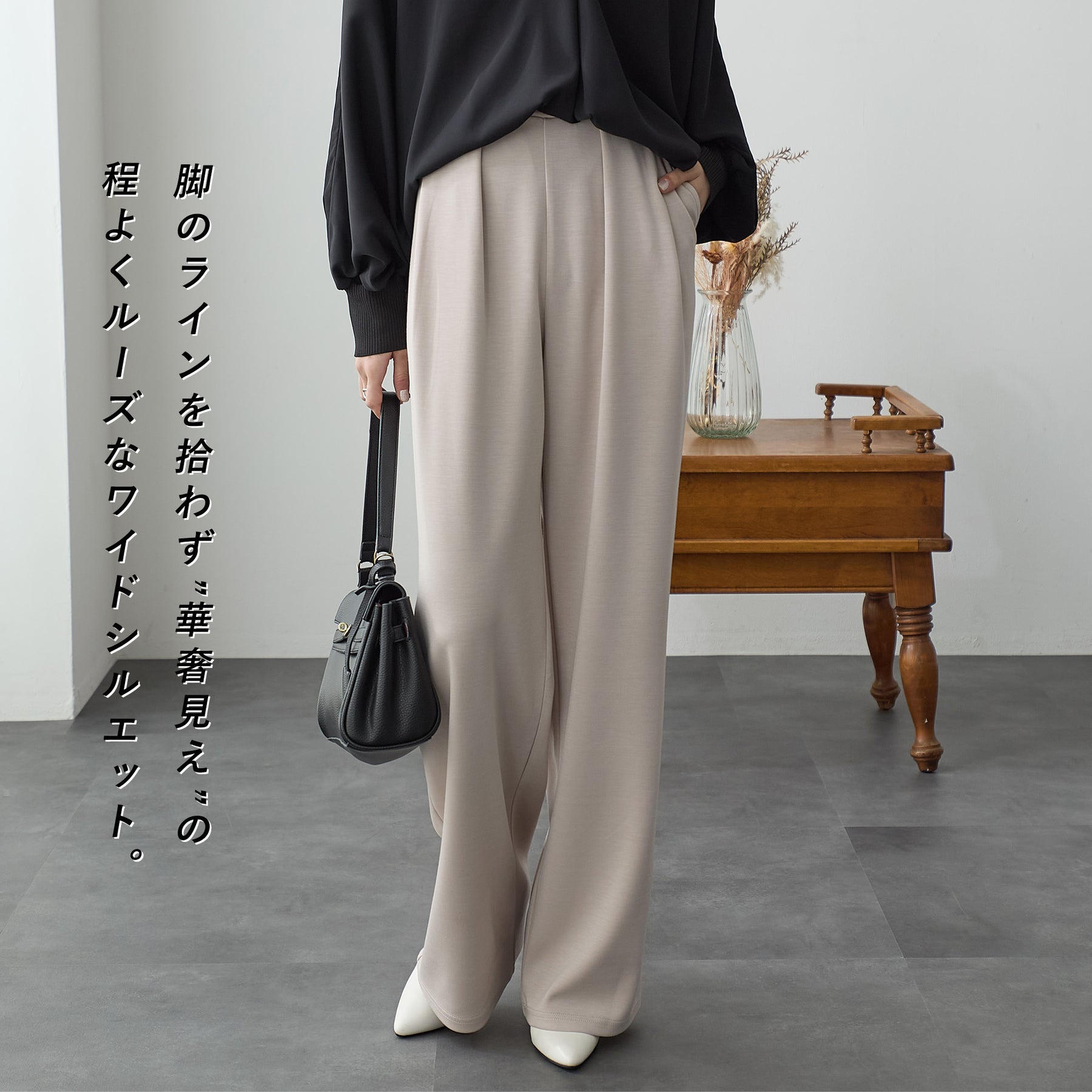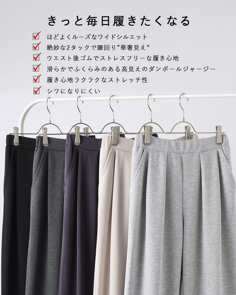<span>【クーポンで2,999円!】</span>【ボトムス】『”美フォルム”ワイド』リッチエアジャージー2タックパンツ