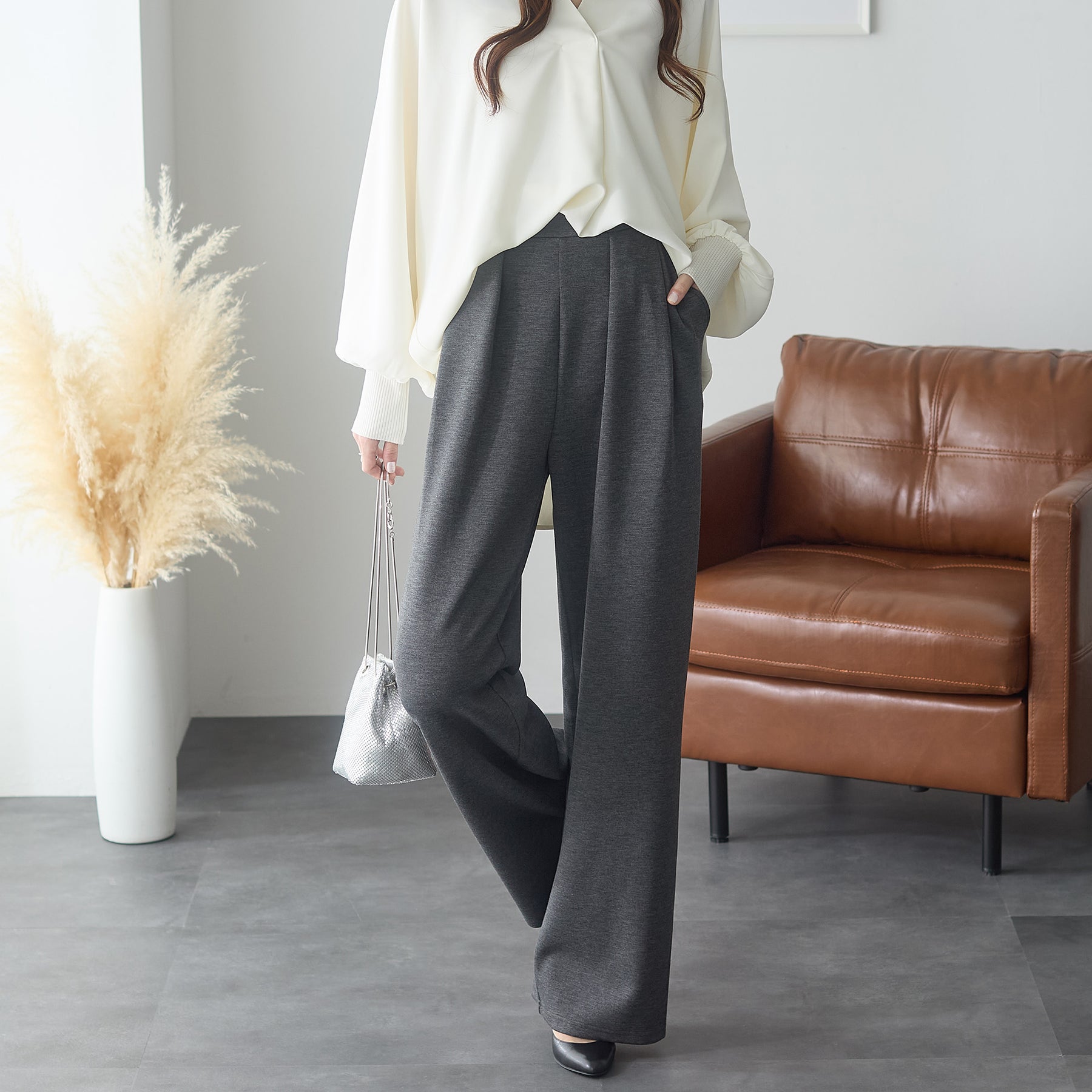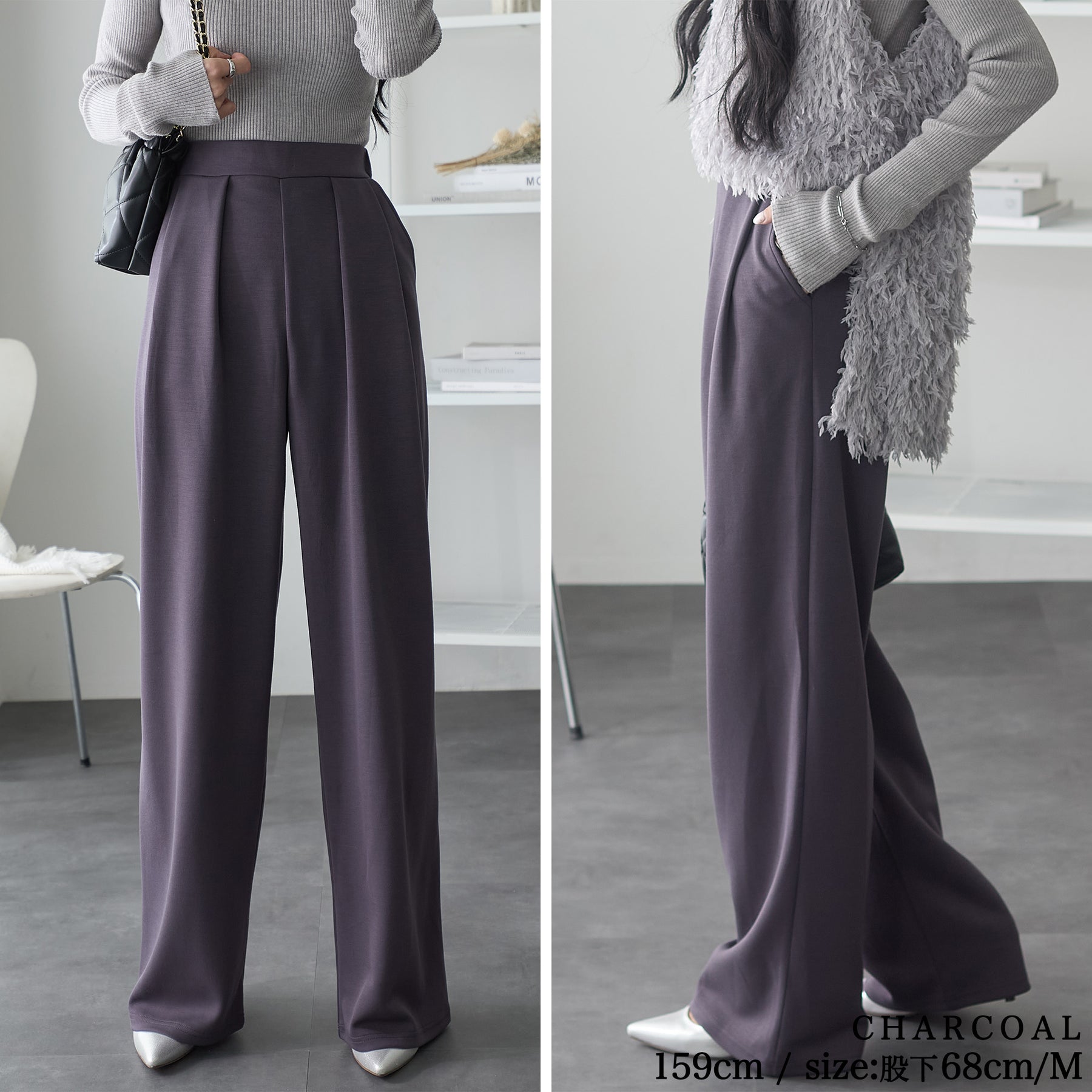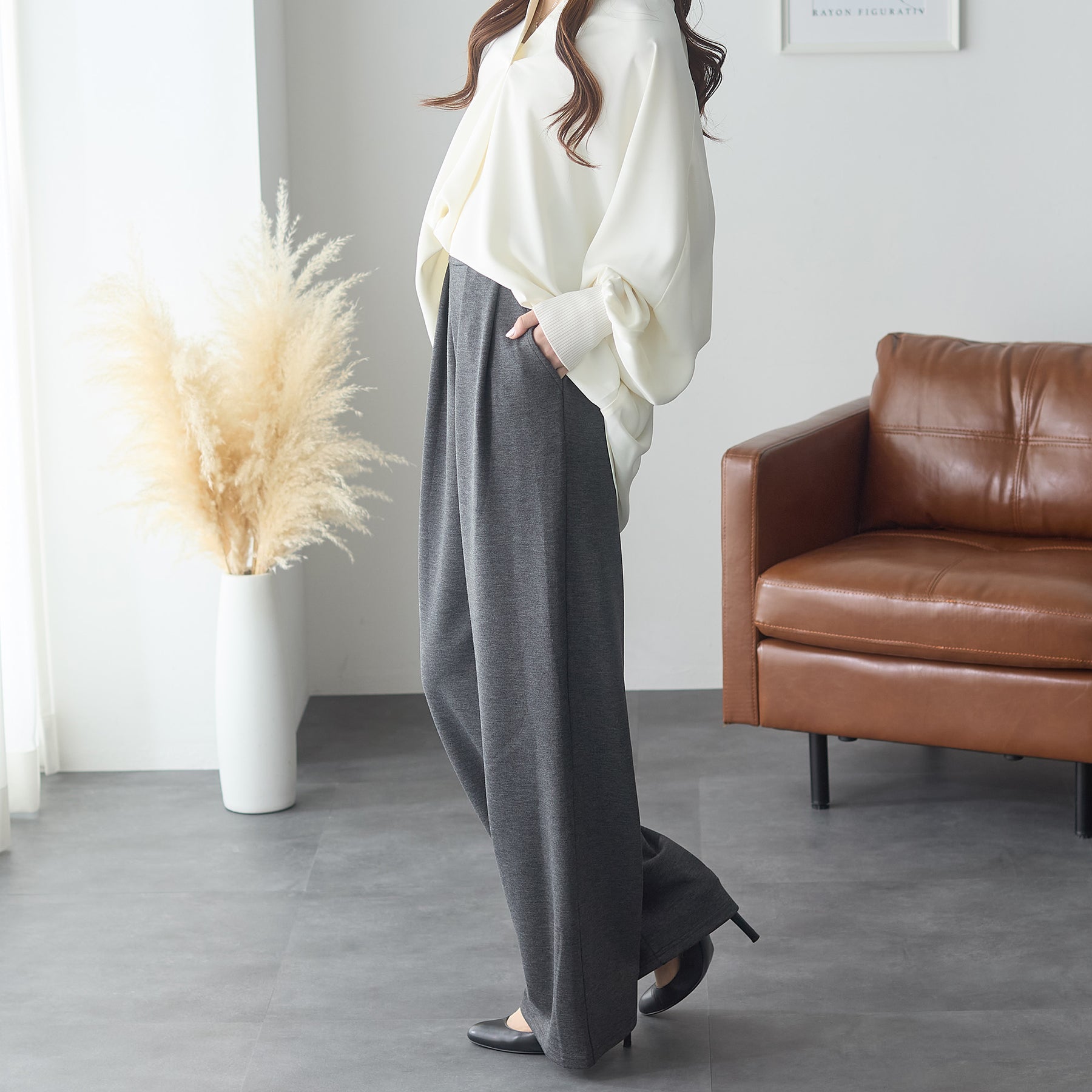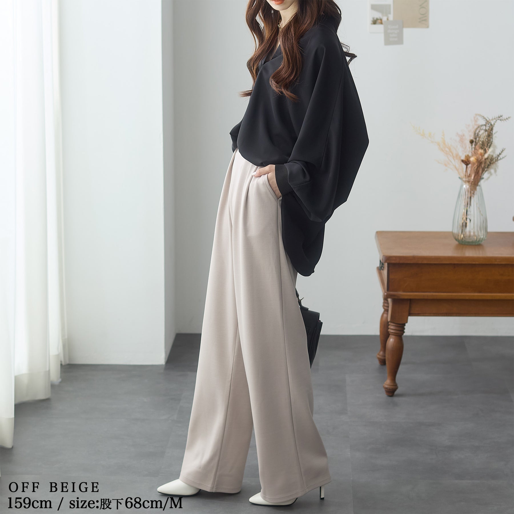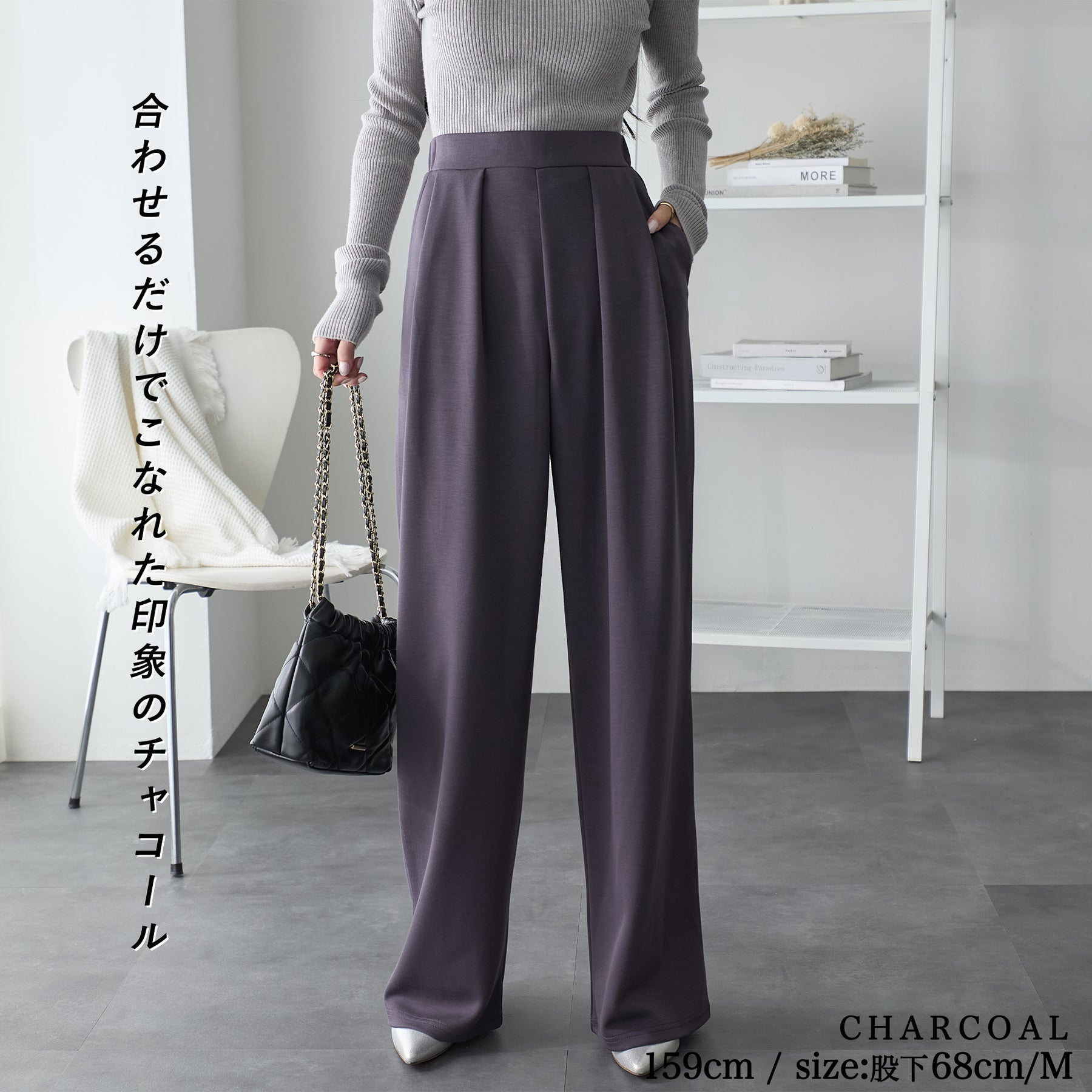 <span>【クーポンで2,999円!】</span>【ボトムス】『”美フォルム”ワイド』リッチエアジャージー2タックパンツ