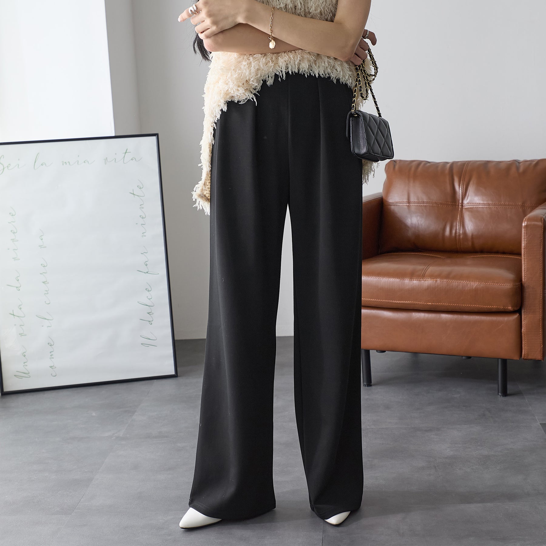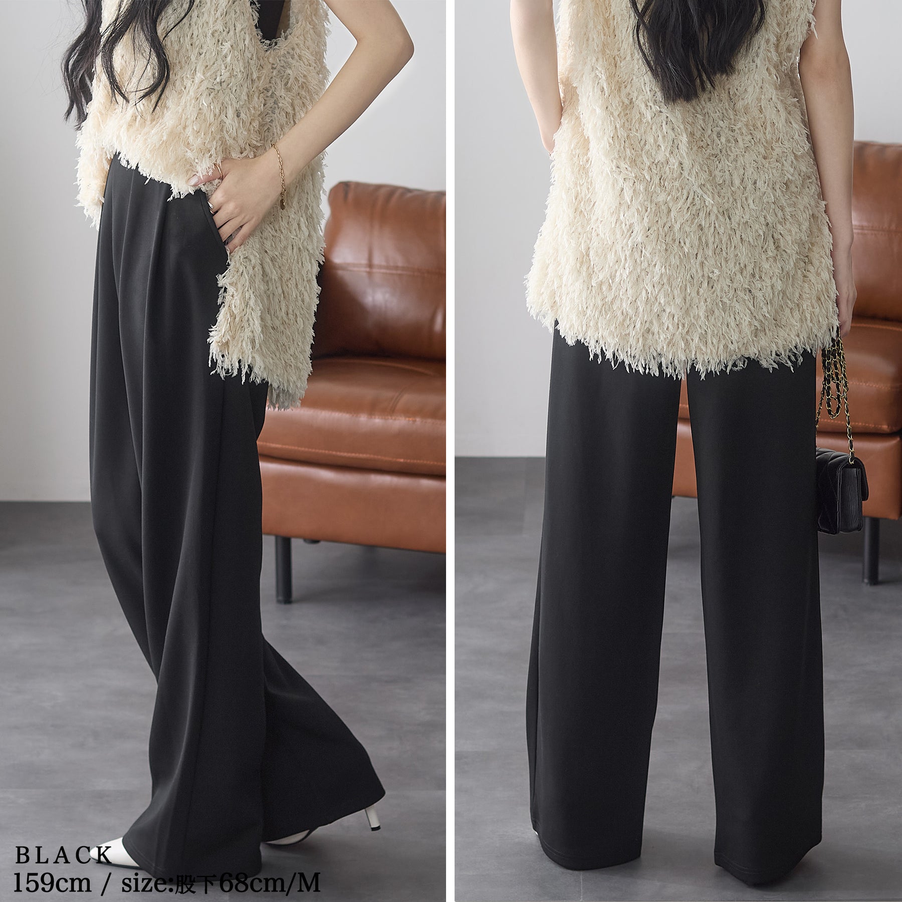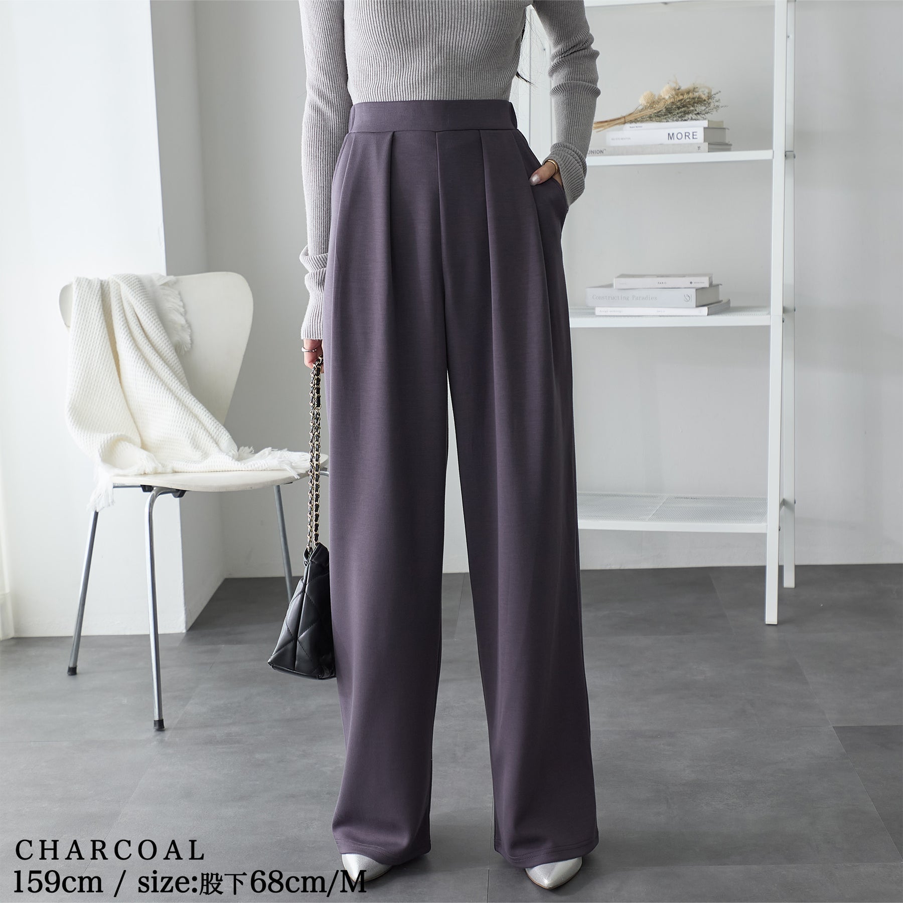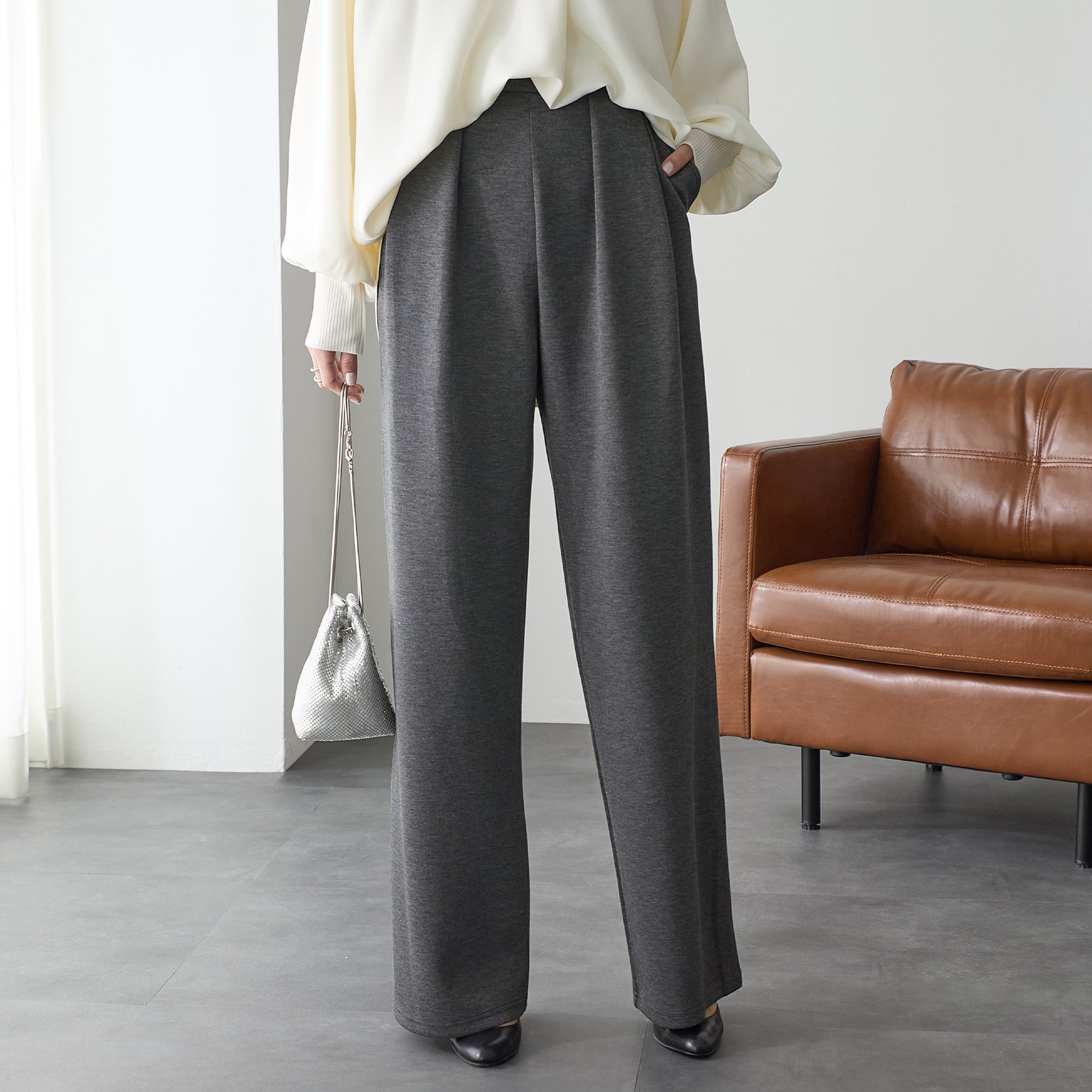 <span>【クーポンで2,999円!】</span>【ボトムス】『”美フォルム”ワイド』リッチエアジャージー2タックパンツ